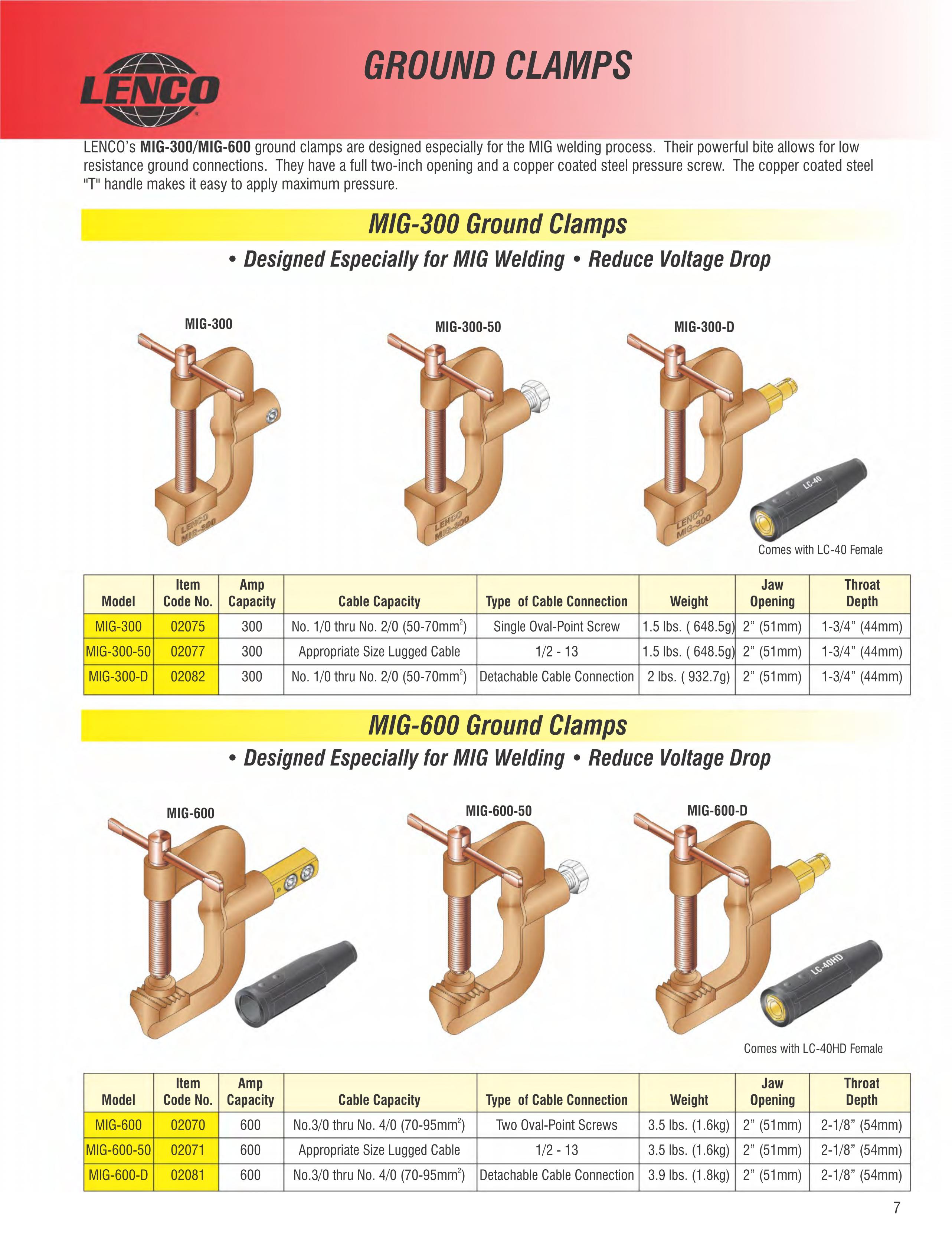| MIG-600-50 | 02071 | 600 | Болт | 1/2 - 13 | 3.5 lbs. (1.6kg) | 2” (51mm) | 2-1/8” (54mm) |