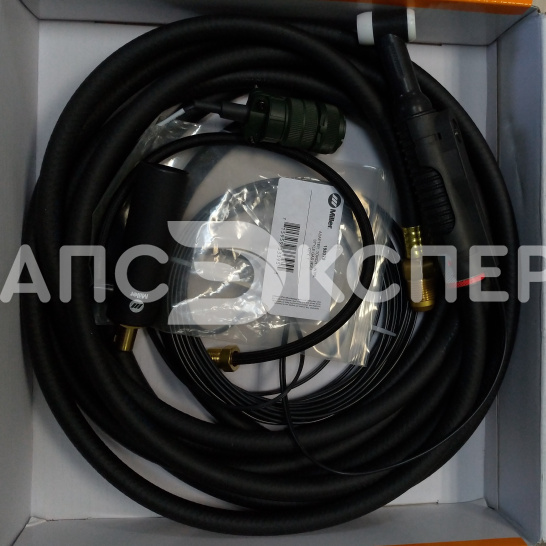 Ключевые преимущества включают совместимость с широким спектром источников питания Miller (Syncrowave, Dynasty, Maxstar, XMT, Big Blue) через адаптеры 194723, 195379 и 45V62. Эргономичная конструкция обеспечивает удобство работы, а надежные компоненты гарантируют долговечность даже в тяжелых условиях эксплуатации. Горелка оптимальна для ручной дуговой сварки (TIG) на производстве, в сервисных центрах и мобильных применениях.