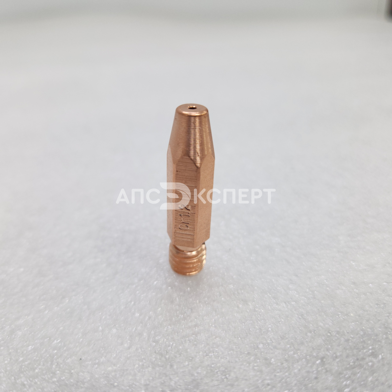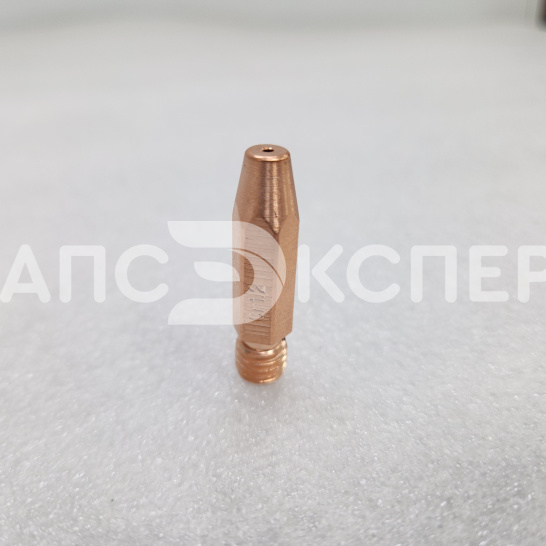 Усиленный контактный наконечник из сплава меди, хрома и циркония (CuCrZr) для полуавтоматической сварки. Предназначен для работы со сплошной и порошковой проволокой диаметром 1.2–1.6 мм. Длина 35 мм и резьба М8×1.2 обеспечивают совместимость с горелками стандарта RF-45 и аналогами.